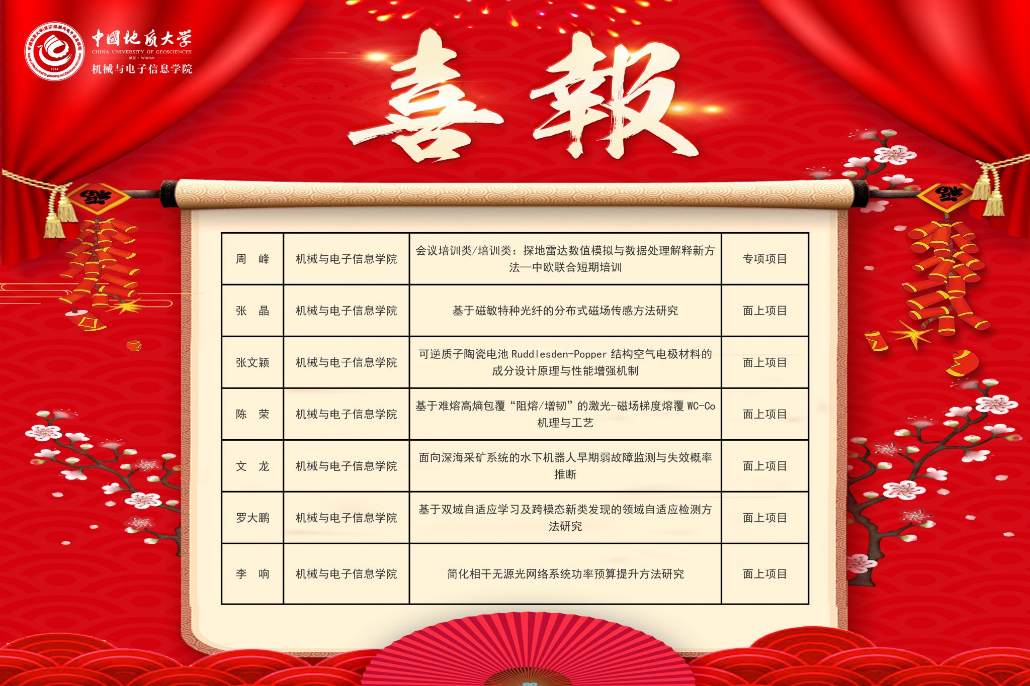 查看详情日前,国家自然科学基金委员会公布了2025年度国家自然科学基金申请项目评审结果,我院共有7个项目获得资助,其中面上项目6项、专项项目1项。 周峰老师申报的《会议培训类/培训类:探地雷达数值模拟与数据处理解释新方法—中欧联合短期培训》获得专项项目资助…