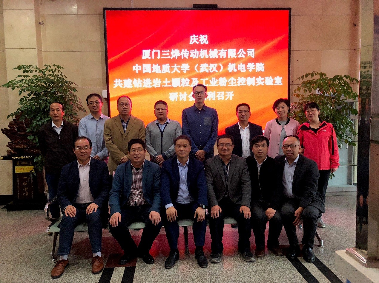 与厦门三烨传动机械有限公司校企共建“钻进岩土颗粒及工业粉尘控制实验室”第二次研讨会于2018年10月19日在我院顺利召开。出席本次研讨会的代表有厦门三烨传动机械有限公司董事长卢禄华、三烨工业技术研究院院长江进国、主任江美楠;中国地质大学(武汉)原全国人大代表王亨君、实验设备处副处长罗勋鹤、教务处实践教学科王仲停老师、工程学院欧阳辉老师、机电学院全体院领导及各三级单位主任,会议由院党委书记瞿祥华主持。