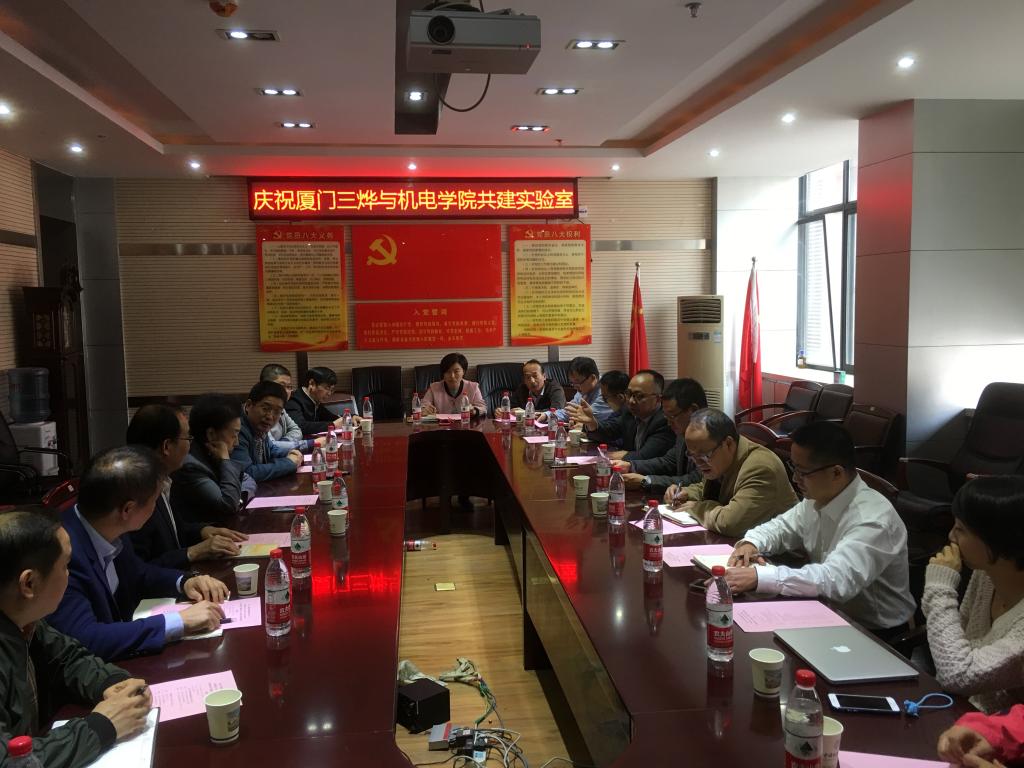 机电学院院长丁华锋教授简要介绍了学院目前的重点发展方向,强调与企业共建实验室是机电学院一种新的有力尝试,是学院未来借力企业提升学院人才培养质量的重要手段。学院十分重视此次与三烨共建实验室项目,为未来引进更多的此类项目探索出扎实可行的经验。厦门三烨传动机械有限公司董事长、机电学院优秀校友卢禄华总经理就共建实验室项目做出重要讲话,认为校企共建将助力企业发展、攻克企业难关,粉尘控制的重要性与必要性以及广阔的市场前景将为学院广大教师提供施展才华的舞台,同时也表示愿意为学校人才培养做出企业应有的贡献。