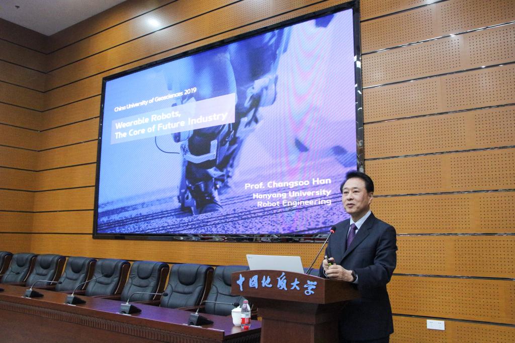 为推动五楼自拍 机械工程一级学科博士点建设,应中国地质大学(武汉)校长王焰新教授邀请,韩国工程院院士、韩国汉阳大学韩彰秀教授来学校作学术报告。报告会于东区综合楼A0113报告厅召开,参与本次报告会的有中国地质大学(武汉)副校长王华,武汉地质资源环境工业技术研究院副院长罗林波,科发院李杰,机电学院院长丁华锋,党委书记瞿祥华,副院长罗杰、黄田野,学院各系老师及学院本科生与研究生。