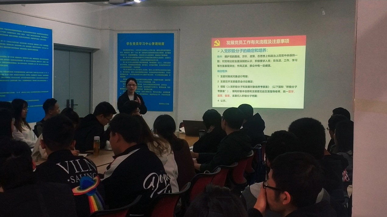 最后,黄梅娇就近期学院发展党员工作做简单布置,她鼓励各位党务工作者主动积极承担责任、为党的工作贡献力量,同时要不断提高自身修养、坚守党员底线、争做同学们的好榜样。