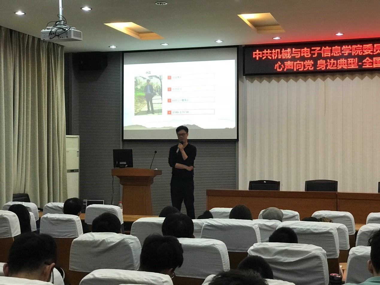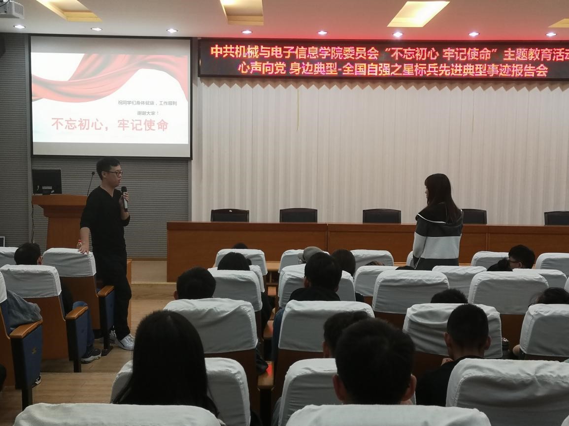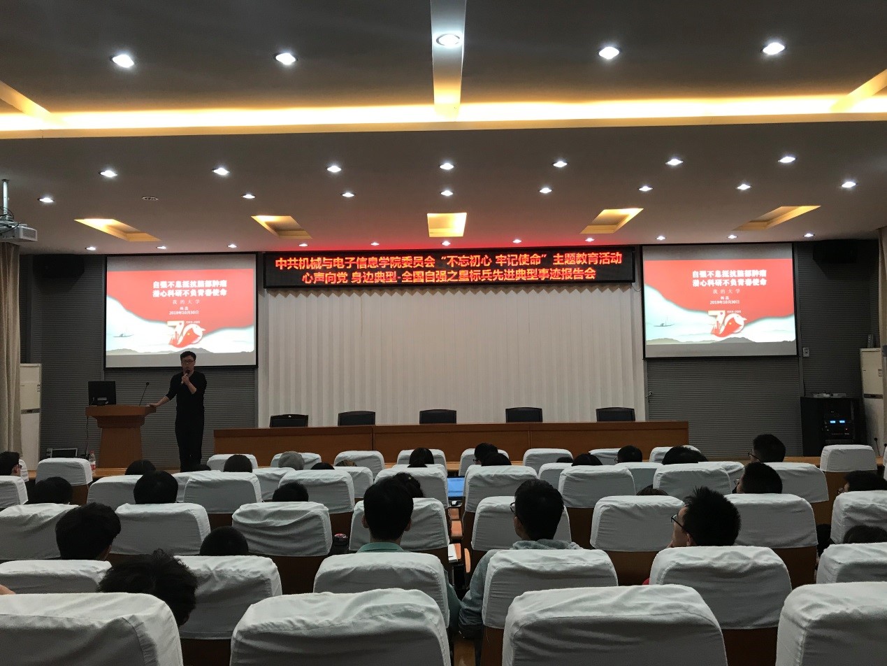 委员会“不忘初心,牢记使命”主题教育活动在教二楼301举行,本次活动主题为心声向党•身边典型-全国自强之星标兵先进典型事迹报告会。2018年全国自强之星标兵、我院博士研究生党员韩磊担任主讲人,学院全体学生党员参加学习。