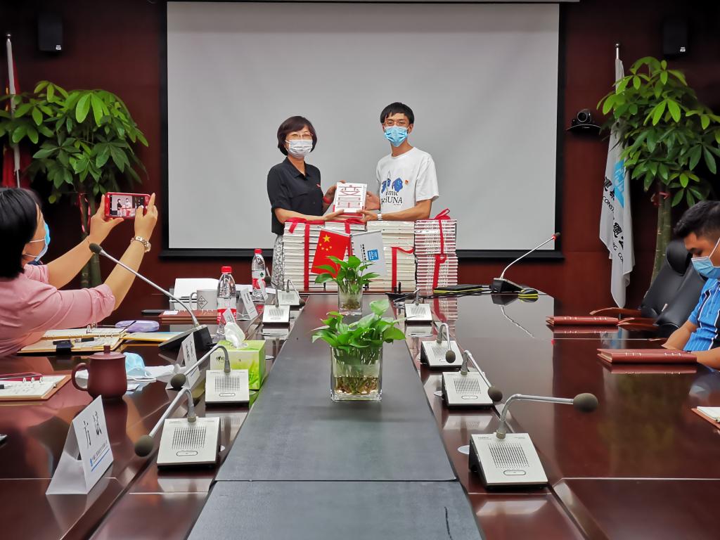 智能公司工会主席葛卿代表公司为我院赠送《从政提醒》《大力保持党的纯洁性》《变量》等经典书籍,以营造风清气正、崇廉尚廉的合作氛围,拉开“校企廉政共建”的序幕。