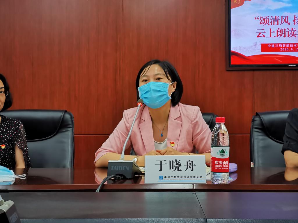 于晓舟一行参加了智能公司“颂清风 扬正气”云上朗读者活动,12位参赛选手围绕“诵读中华经典,弘扬清廉新风”主题,朗诵了“直言天下第一事疏”的《治安疏》,讲述公司纪检干部奋战火神山故事的《把监督挺在战斗最激烈的地方》,选手改编的廉洁文章《廉洁过好每一天,坚定走好人生路》等诗词、文章。