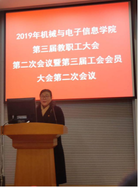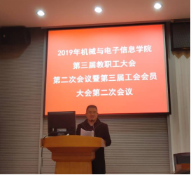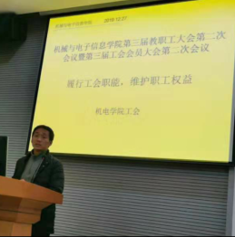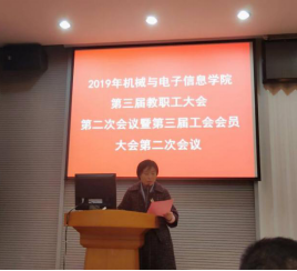 第三届教职工大会第二次会议暨第三届工会会员大会第二次会议在教二楼301会堂隆重召开。校工会副主席于荣萍同志及机电学院全体教职工与会,会议由机电学院党委副书记于晓舟同志主持。