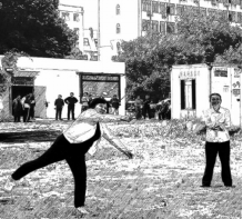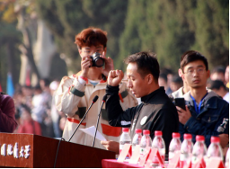 图3 机电学院教师代表在主席台宣誓 图4瞿祥华书记立定跳远比赛