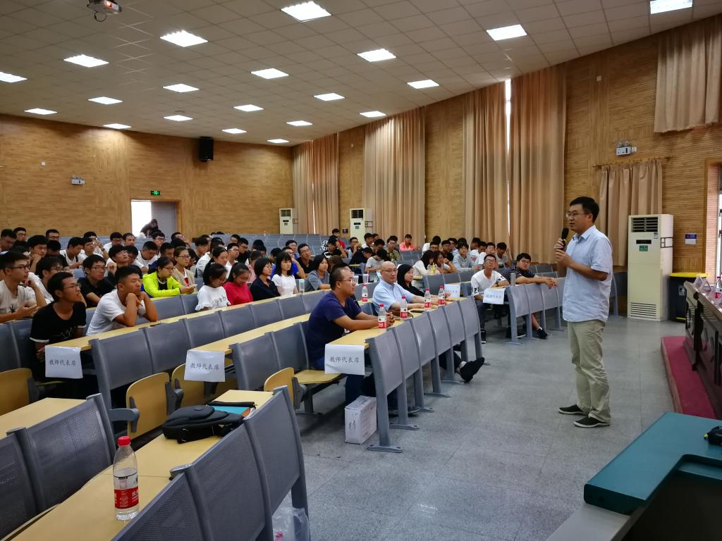 丁华锋讲话。他对机电学院2018级新同学的到来表示热烈欢迎,并对初入大学的同学们提了三点要求:明确目标、制定计划;注重能力、勇于实践;重视品德修养。他希望同学们都能成为“品德高尚、基础扎实、专业精深、知行合一”的优秀地大学子。