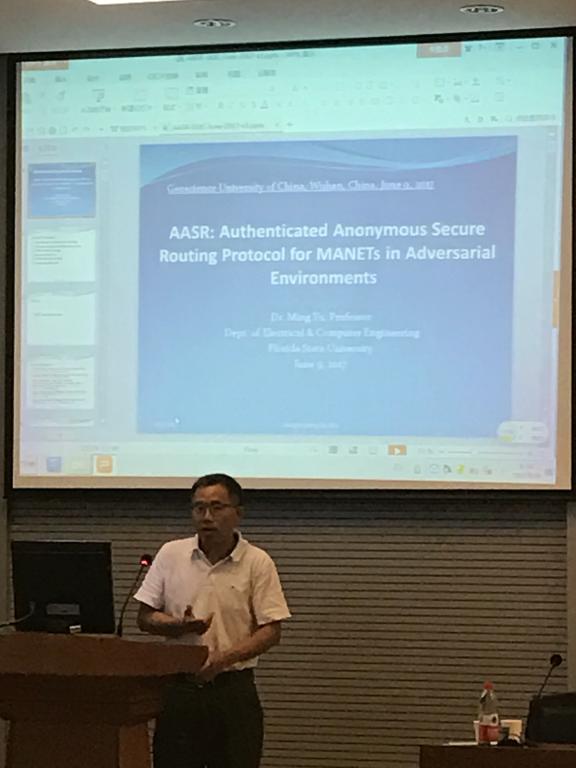 院长丁华锋教授、科发院邀请,美国佛罗里达州立大学Ming Yu教授于6月9日来我院作题为“Authenticated Anonymous Secure Routing for MANETs in Adversarial Environment”的学术报告。
