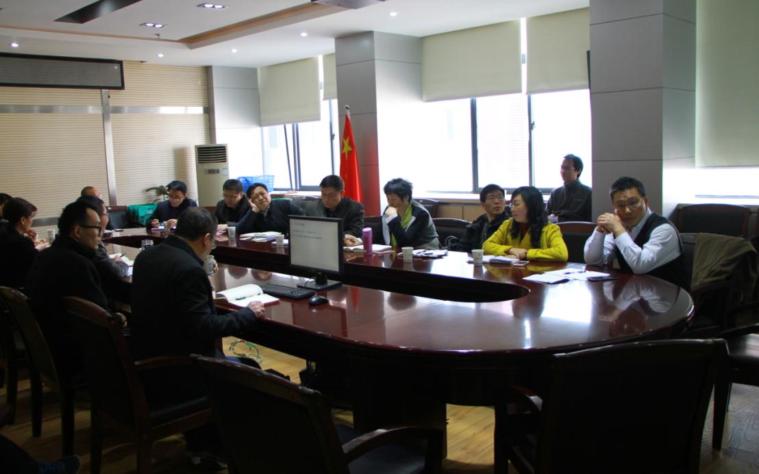 罗杰副院长介绍学院目前的科研现状,提出我院科研目前亟待解决的问题:1、高层次人才少,人才储备不足;2、平台及团队建设处于起步阶段,需要扶持和引导。丁华锋院长就我院2015年产学研基地建设、科研成果转化等方面作补充说明。