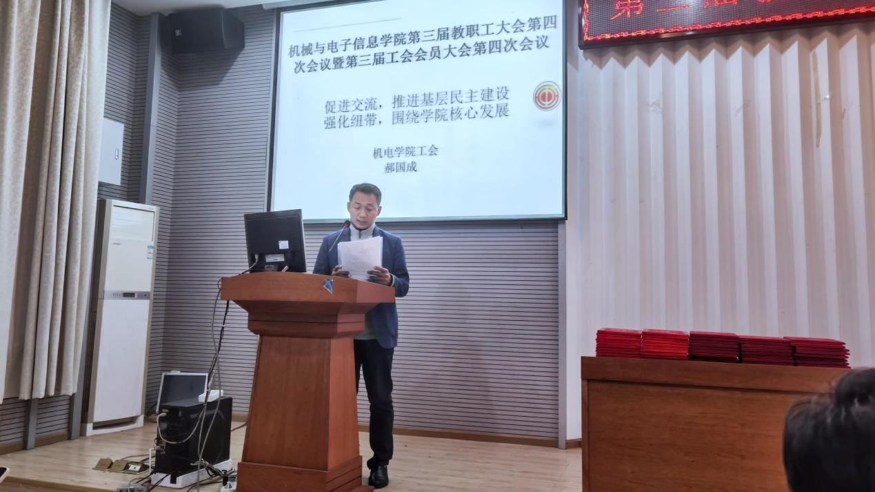 大会第一阶段,院工会主席郝国成宣读校工会批复文件,并作2022年工会工作报告。报告内容包括本年度年机电学院工会取得的各项成绩、展望下一年度的工会工作,另就本年度机电学院工会经费收支情况作了公开说明。院办公室主任陶安东同时作机电学院2022年度财务工作报告,详细介绍了今年学院各项经费的收支情况。
