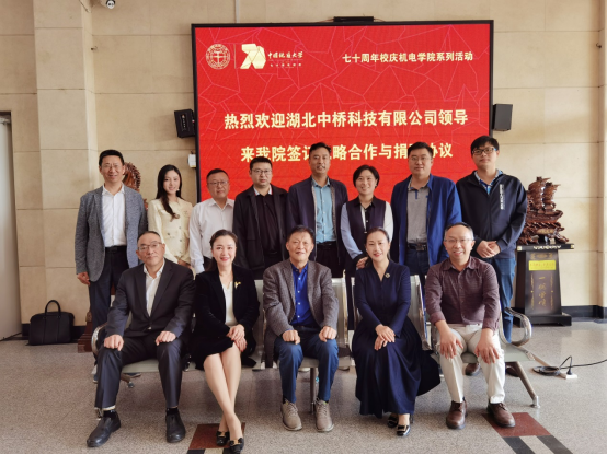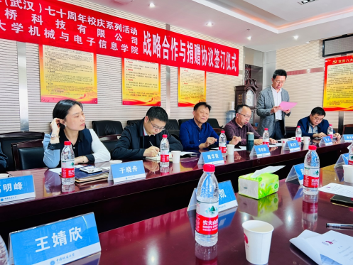 此次仪式是七十周年校庆机电学院系列活动之一,签约仪式上双方代表分别在《双方战略合作协议》和《捐赠协议书》上签字,湖北中桥科技有限公司向我院捐赠三十万元奖学金以及价值二十万元的科研设备。