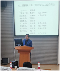 机电学院院长丁华锋作2020年机电学院工作报告。报告总结了机电学院一年来工作的总体成效和问题,特别提到在疫情暴发的特殊时期,全院教职工的默默奉献和抗疫中涌现的一些感人事迹;同时提出了2021年的机电学院的工作重点,并号召全院教职工再接再厉,争取下一年度的工作再上新台阶。