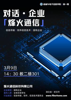 39日下午,我院第一期“对话·企业”专题讲座在教二楼301举行。烽火通信科技有限公司人力资源部负责人夏康宁应邀为学院通信专业的130名学生讲授题为《烽火少年 乘烽启航》行业发展动态主题报告。