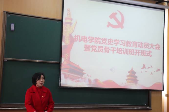 4月8日下午,机电学院学生党史学习教育动员大会暨学生党员骨干培训班开班仪式在教三楼111举行。学院党委副书记于晓舟老师,学工组相关老师,学生党员代表、团学组织主要负责同学、学生党建办公室全体同学参加会议。学院党建辅导员刘彪主持会议。