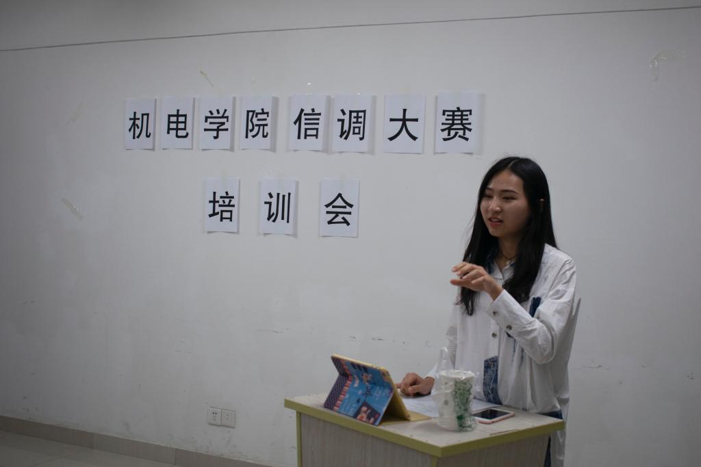 (通讯稿 杜育 李慧雯 摄影 黄伟)为使参赛团队积极的投入比赛,更好的准备后期的答辩工作,4月17日19时,由机电团委信宣部主办的机电学院信调大赛培训会于大学生学习支持中心6号学习室举行。参加本次培训的有全体参赛队队员。本次培训邀请到机电学院通信工程专业李芯瑶担任主讲人。