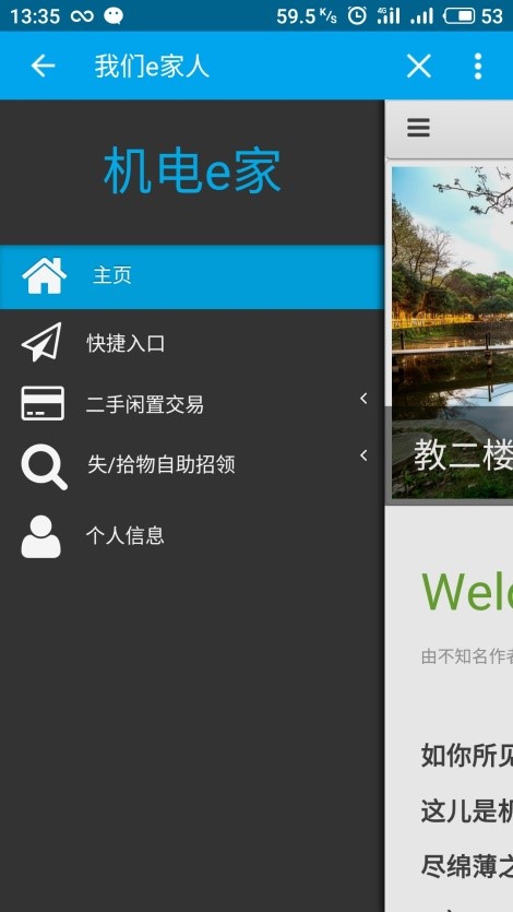 易班工作站特推出“e家”生活工具服务平台。由我院学生自主开发的自助二手闲置市场、自助失/拾物招领系统已经全面上线使用,该功能让同学们通过自己的手机客户端就能实现操作。同时,“e家”目前整合了学生常用的的资源平台,包含地大官网、信息门户、四六级成绩查询等便捷入口,实现一站式服务。