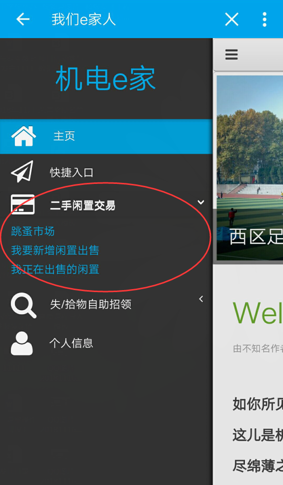 e.闲置交易,可在此处买卖闲置物品