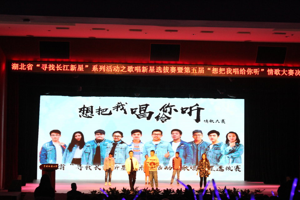 11月25日晚,由我院主办的湖北省“寻找长江新星”系列活动之歌唱新星选拔赛暨第五届“想把我唱给你听”情歌大赛决赛在弘毅堂举行。来自武汉大学、华中科技大学、华中农业大学、中南民族大学以及五楼自拍