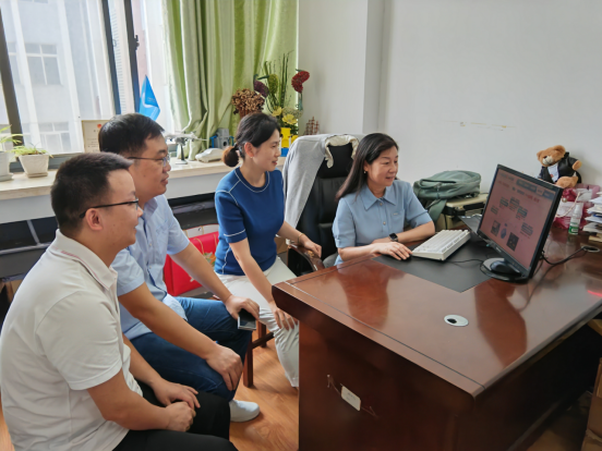 团队教师讨论教创赛PPT时的合影